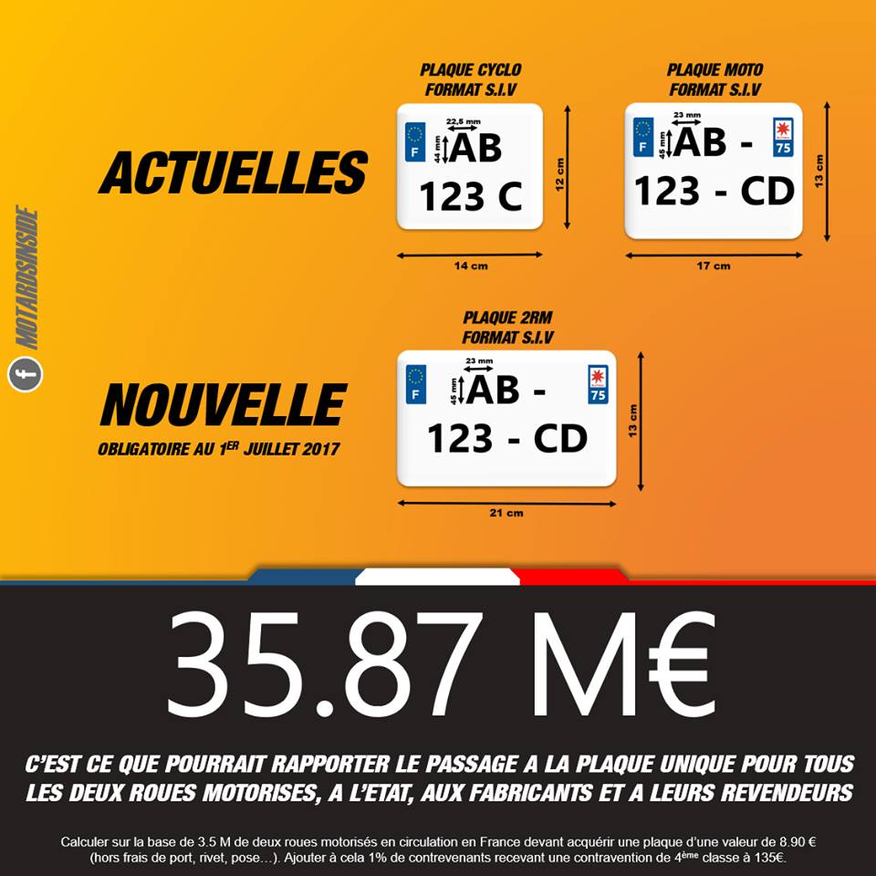 « L’arrêté notifié vise à généraliser à l’ensemble du parc des véhicules à moteur à deux ou trois roues et quadricycles à moteur non carrossés, à compter du 1er janvier 2017, le format unique de 210 millimètres par 130 millimètres des plaques d’immatriculation posées depuis le 1er juillet 2015. »