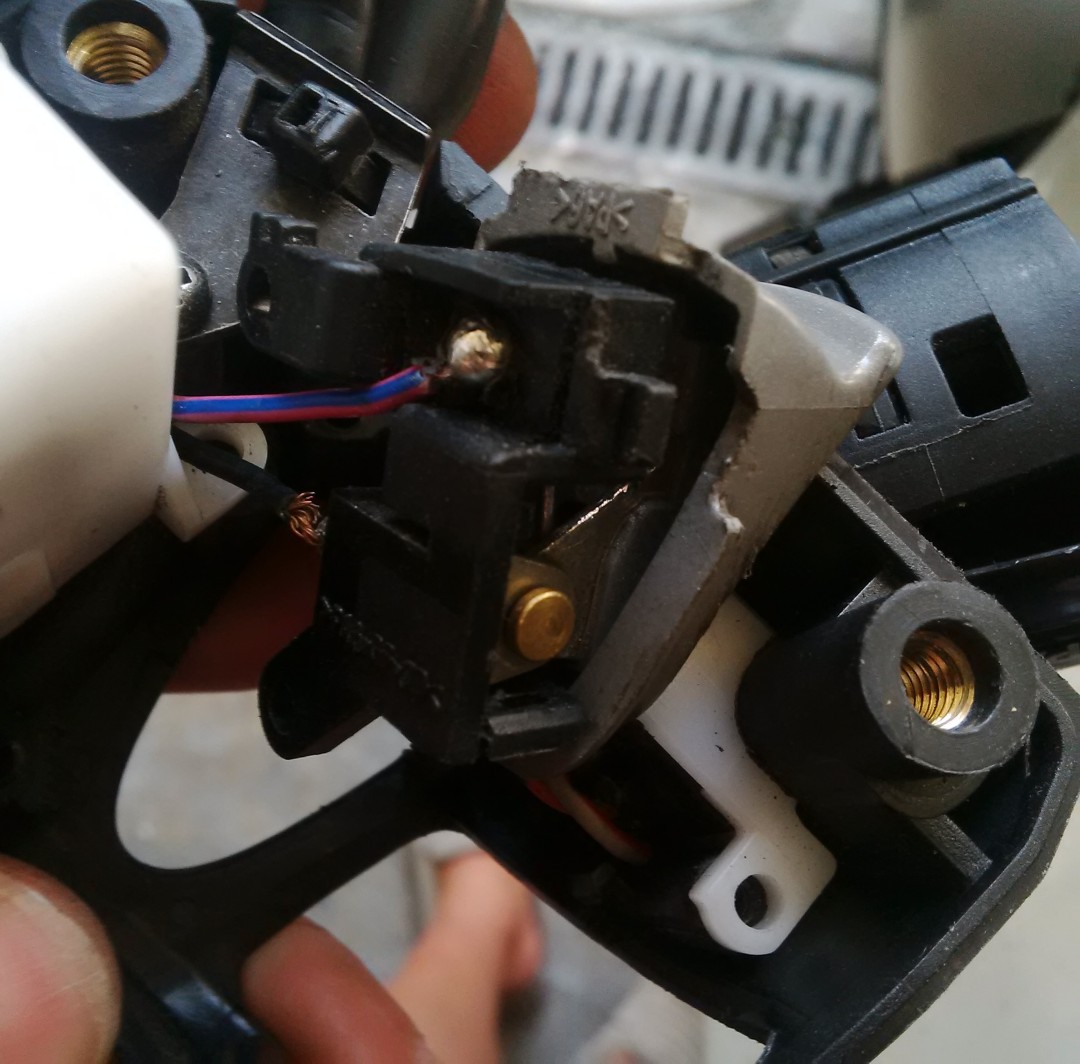 Oui je pense que l'appui en plastique du ressort qui est bouffé ce qui expliquerait que le ressort bascule sans arrêt sans se scomprimer lorsqu'on appuie dessus. Mais impossible de le confirmer. Meme en ayant enlever completement le bouton du klaxon on ne voit pas bien (trop petit et partie pas tres visible). En tout cas cela fait une semaine que j'ai mis le ressort de stylo et cela fonctionne. J'essayerais cette semaine de mettre des photos. Suffit d'avoir un fer a dessouder et un ressort de bonne taille.