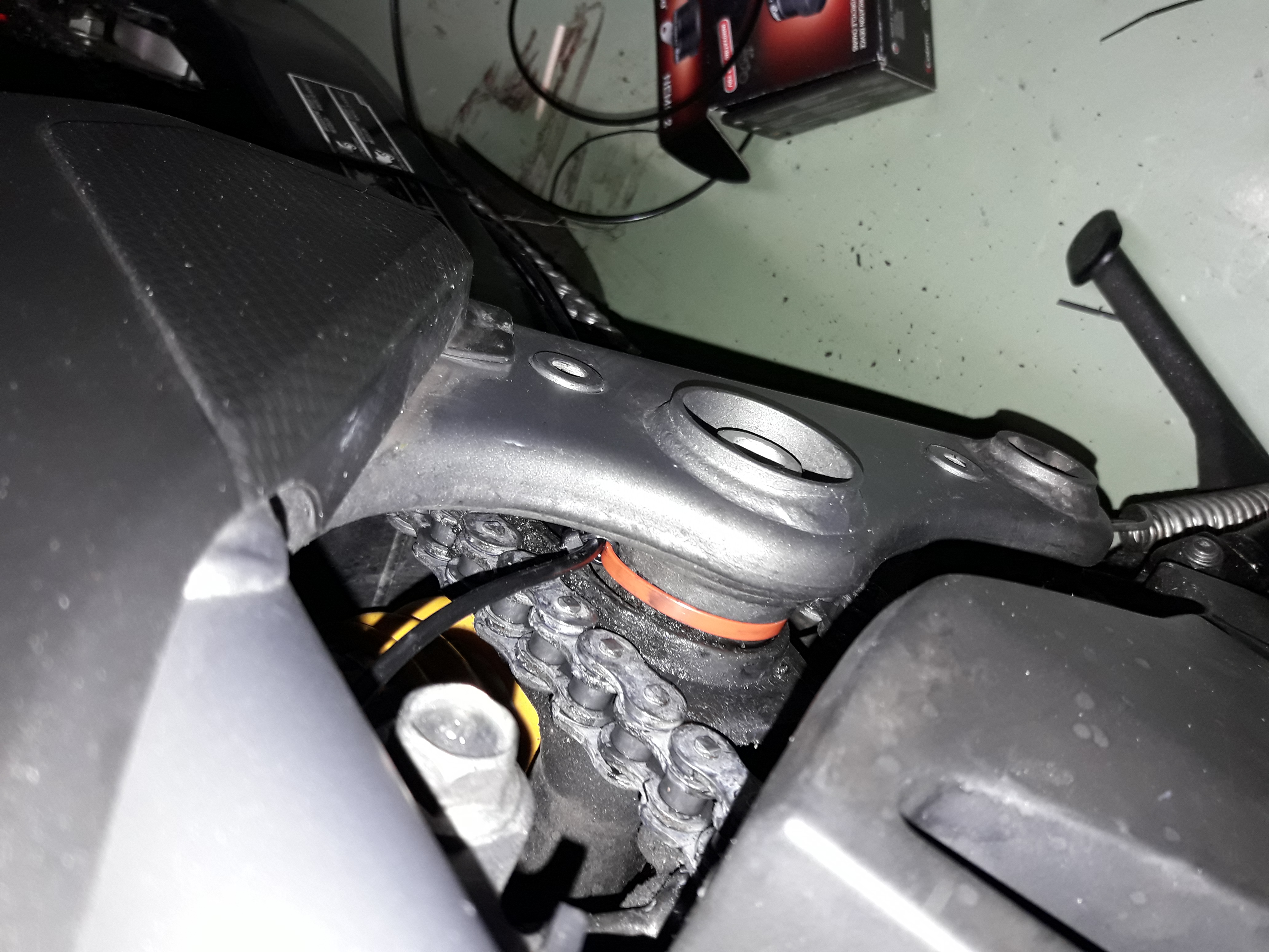 Bin non...C'est ce que je voulais faire au début, mais il m'a été impossible de défaire la vis sup. du patin de chaine.Pif a écrit : Et comment as-tu placé l'extrémité du tuyau ? Avec une patte d'alu, comme EDE ?