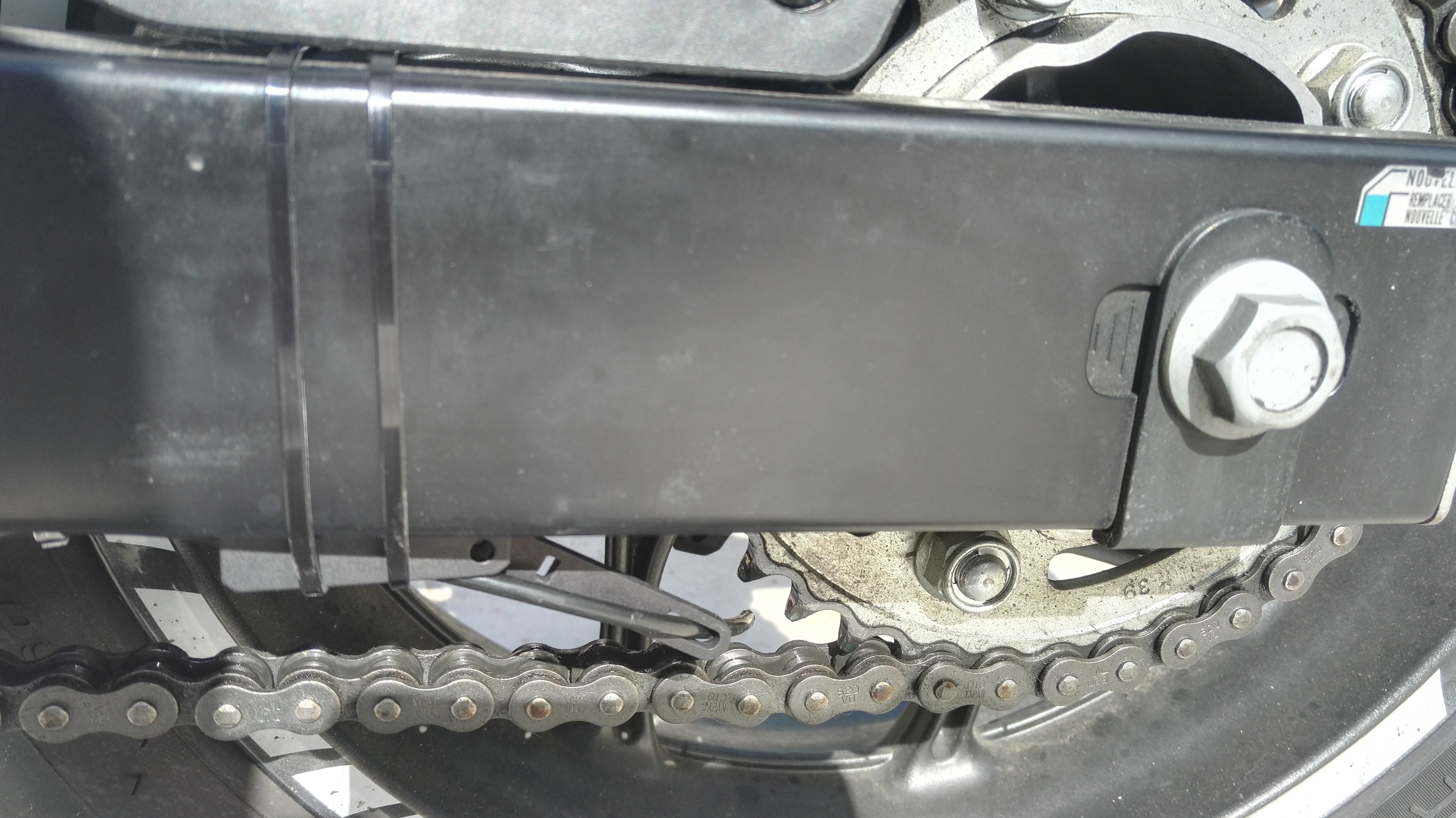 Bin non...C'est ce que je voulais faire au début, mais il m'a été impossible de défaire la vis sup. du patin de chaine.Pif a écrit : Et comment as-tu placé l'extrémité du tuyau ? Avec une patte d'alu, comme EDE ?