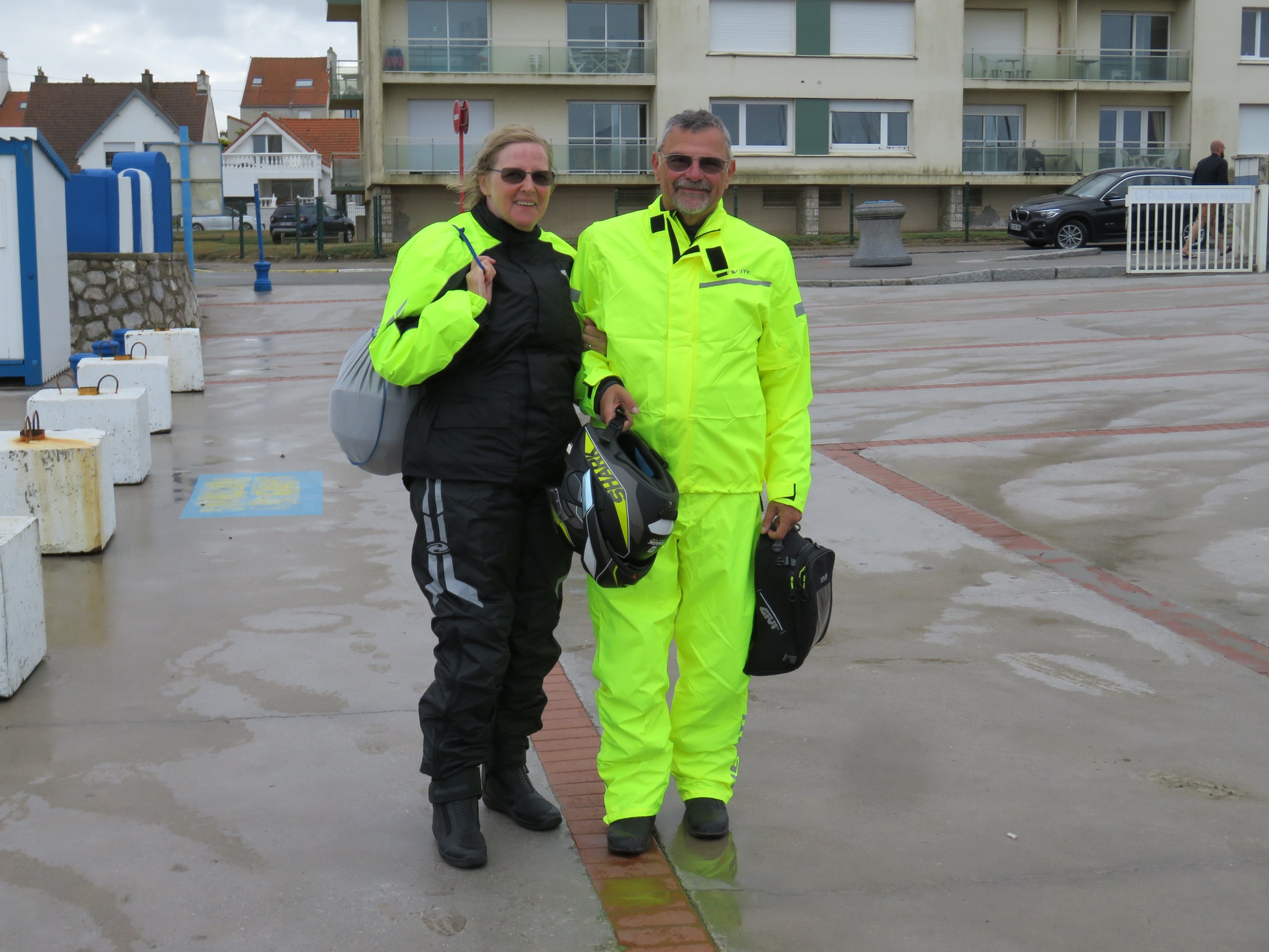 Moi j’y crois plus aux combis, mais bon j’ai testé deux modèles à chaque fois sur 6 h de flotte intense, ça finit par passer, donc pantalon avec membrane intérieure et veste cuir soubirac, la je suis invincible sauf les gants, y a que Mapa xxxxxl avec gants d’été intérieur.