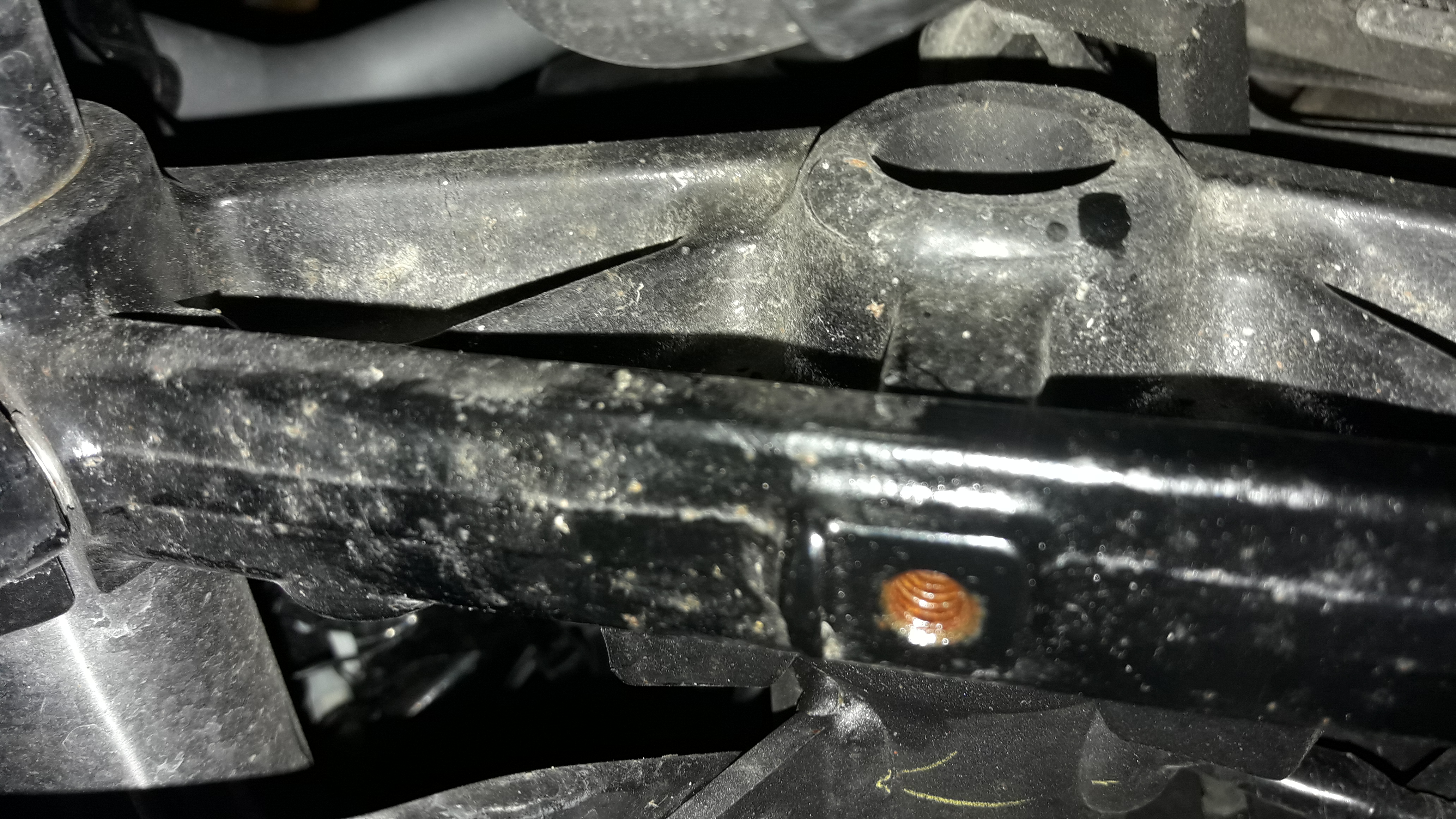 1. Sur le T de fourche en dessous de la tête de fourche il y a un pas de vis vacant. Sur ma Transalp il y avait une bavette anti remous à ce niveau, mais le dessous de la tête de fourche est plus béant sur la Transalp