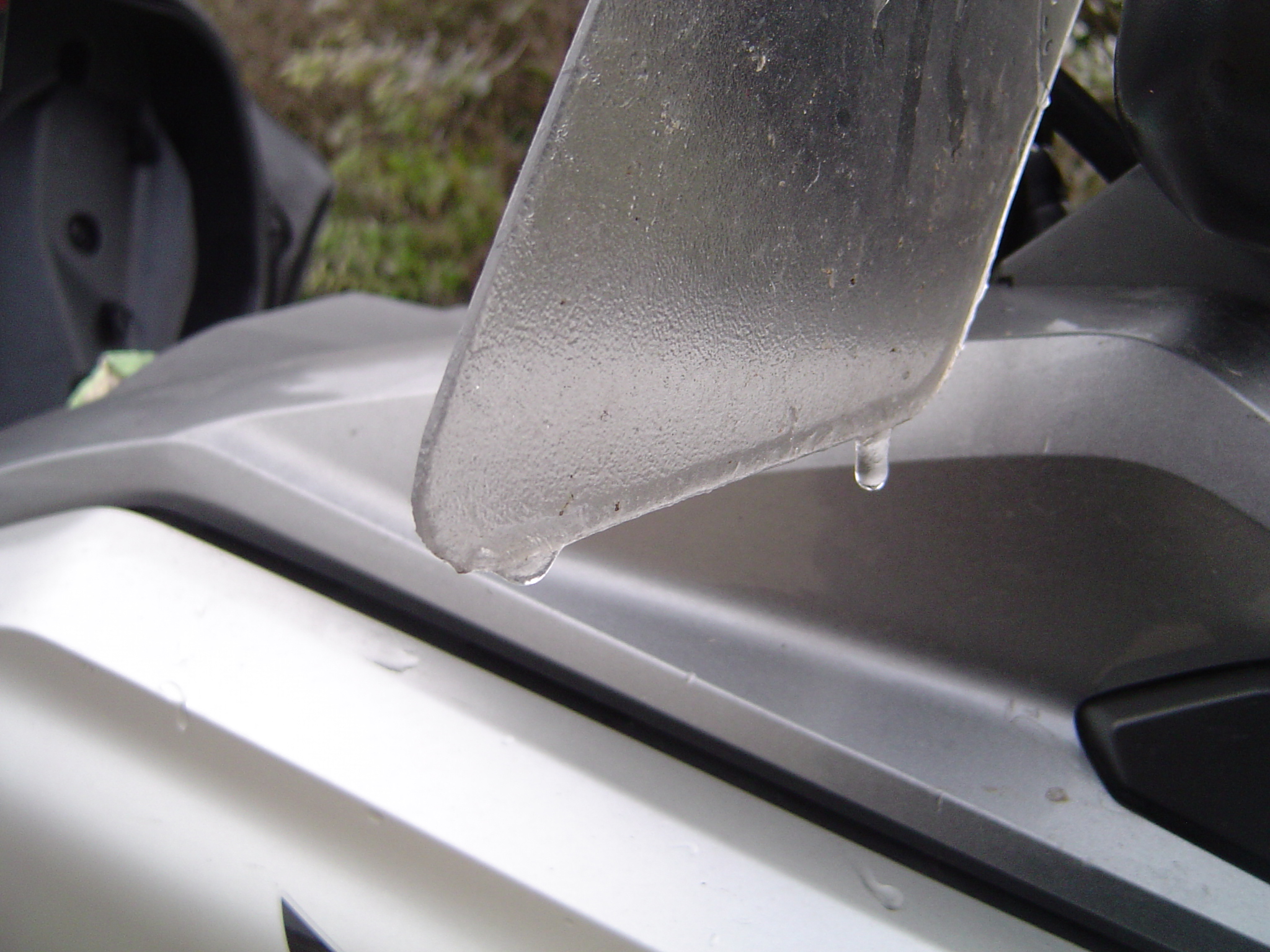 Je suis arrivé à ce qu'aucun flux direct ni turbulence n'atteignent , ni le visage , ni le torse , ni les épaules . Seuls les avant-bras prennent le vent direct . C'est d'ailleurs la seule partie qui givre en roulant alors que des stalactites se forment sur la moto à l'arrèt . (-2° , -3° avec gros brouillard bien dense qui vous rentre dans la peau) .