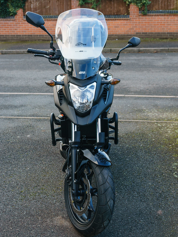 Honda NC700S DCT remplacé par un Suzuki V-Strom 650 M1 et toujours mes manchons Givi pour garder les mimines au chaud l'hiver
