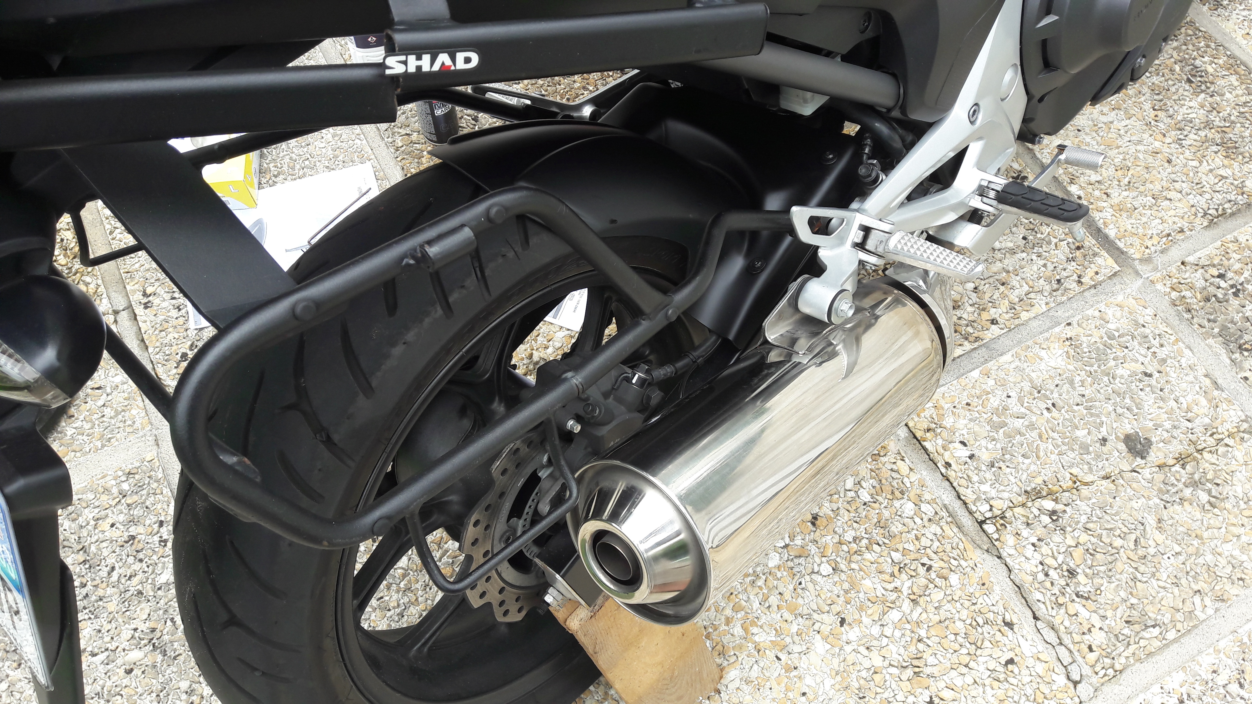 Le garage Royal Enfield du coin qui a révisé mon 125cc me le résoude pour 40 € environ. A voir si je peux trouver le support en neuf chez Shad. Je regarde cela. Sinon je lui laisse pour le faire. Je viens de déposer le support.