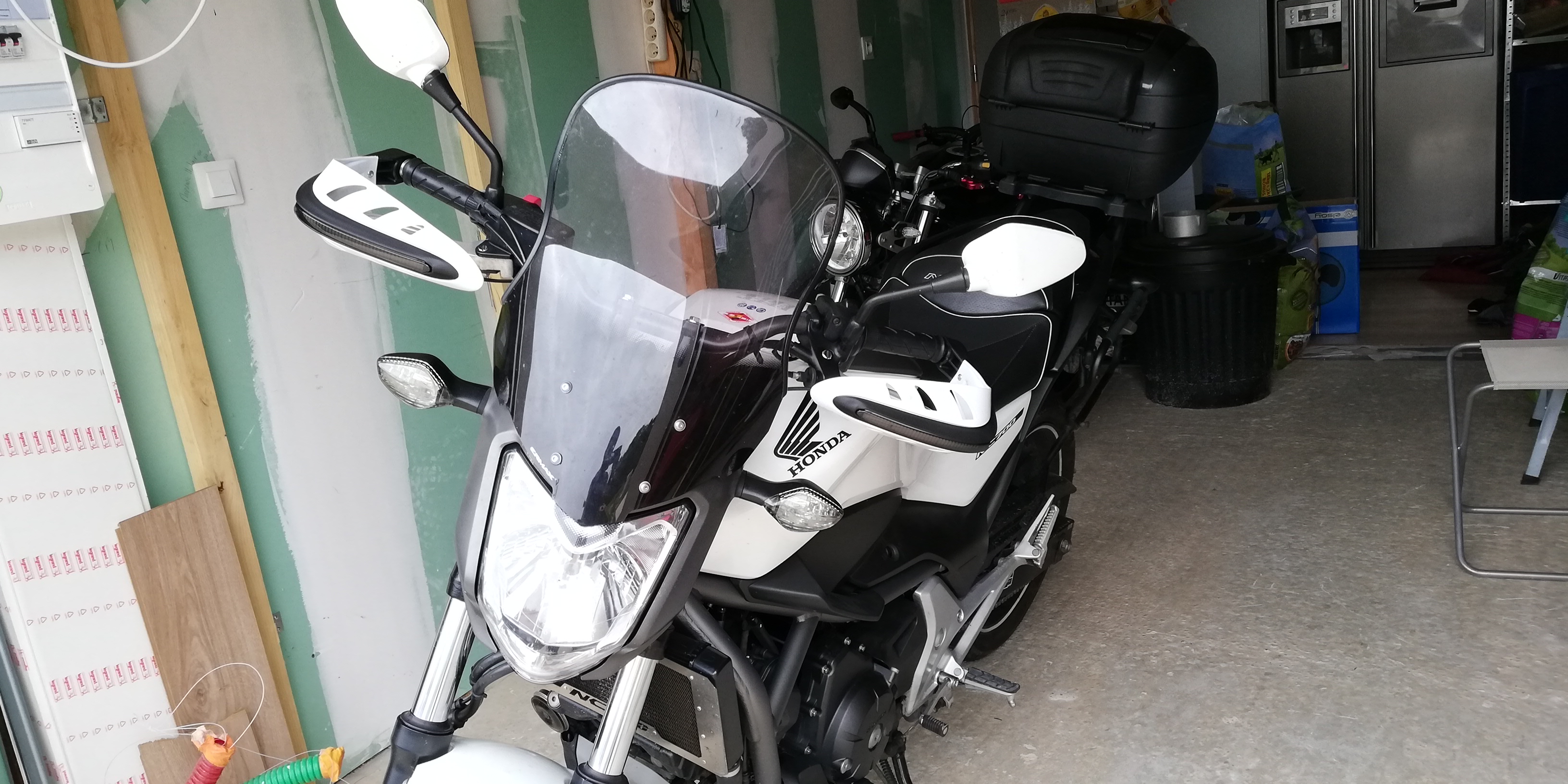 Honda NC700S DCT remplacé par un Suzuki V-Strom 650 M1 et toujours mes manchons Givi pour garder les mimines au chaud l'hiver