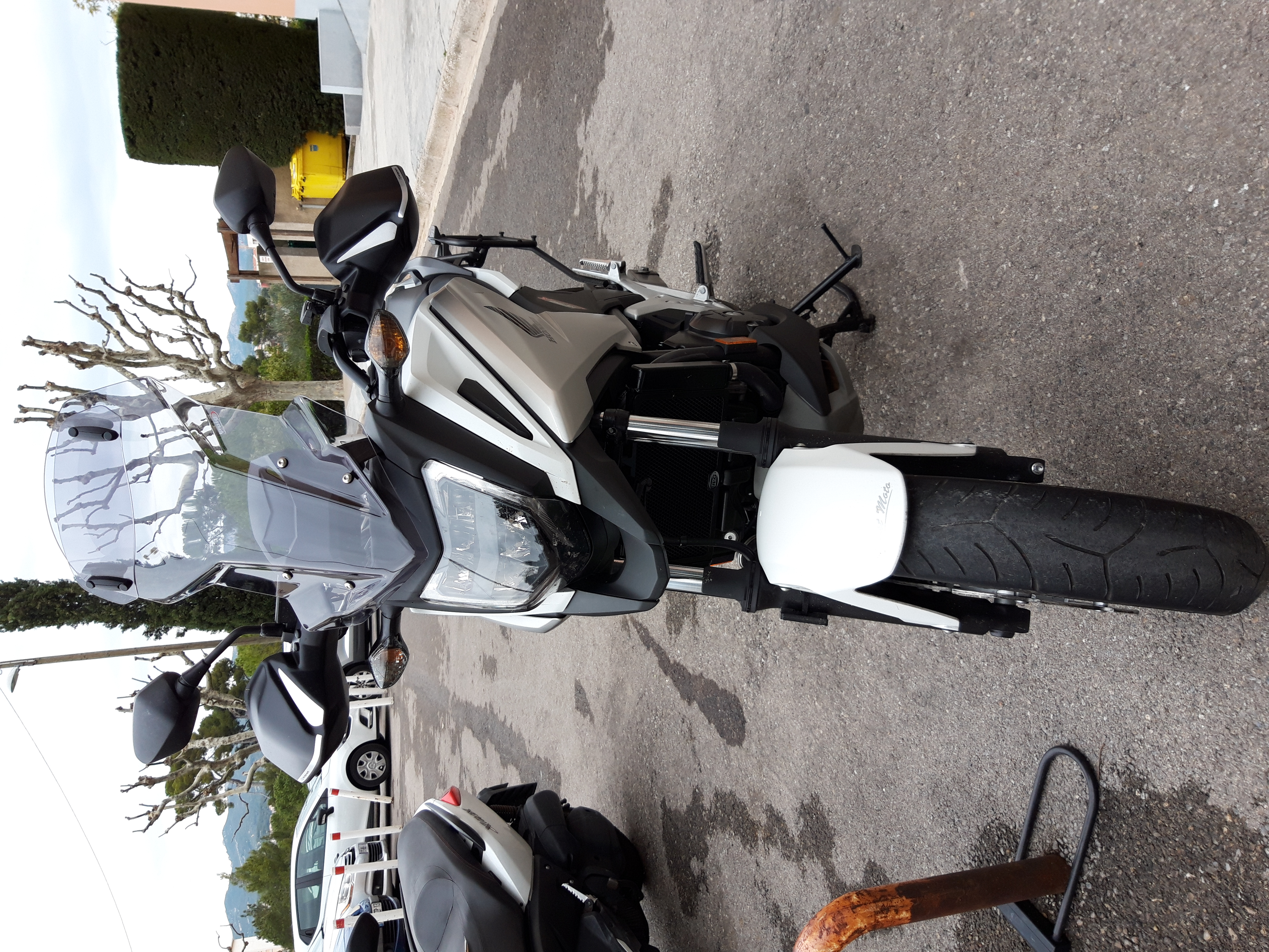 Honda NC700S DCT remplacé par un Suzuki V-Strom 650 M1 et toujours mes manchons Givi pour garder les mimines au chaud l'hiver