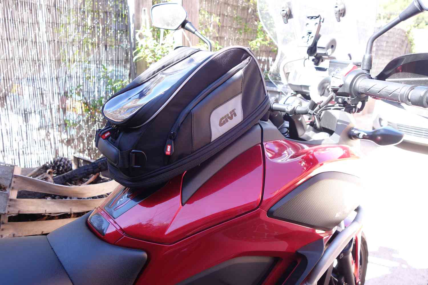 Sur ma NC700 X, j'ai installé une bague de réservoir Givi. Ca me permet d'installer une sacoche de réservoir Givi de 25 l , avec système 'tanklock'.