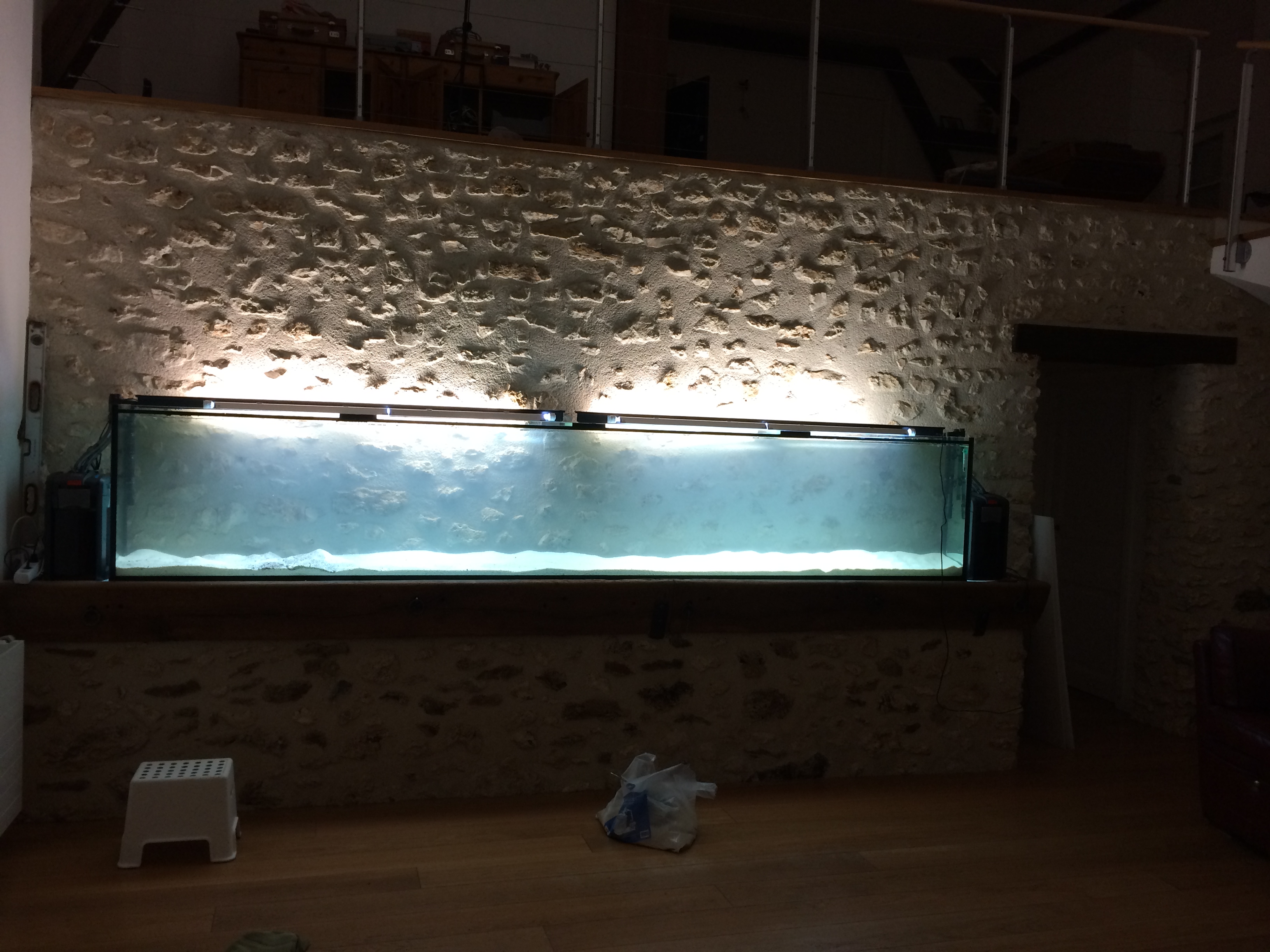 voila les premieres photos l ancien (2mx50X70) l nouveau dans le camion, avant la mise en place, pendant et apres, bientot plus de plantes et les poissons